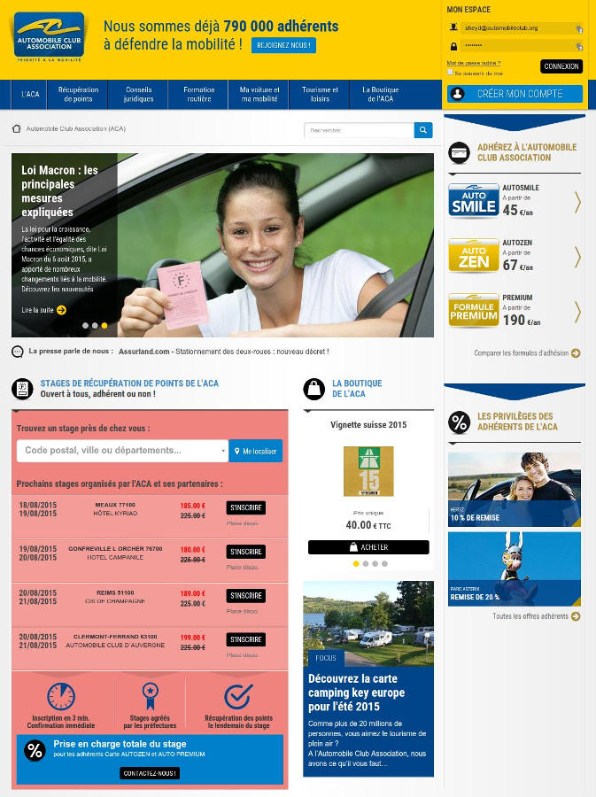 Réalisation du site institutionnel de l'Automobile Club Association, première association française de défense des automobilistes.