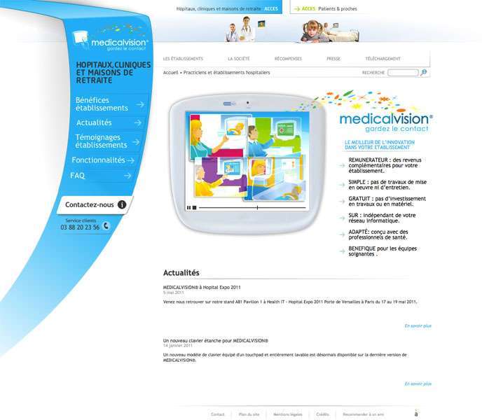 Réalisation du site et d'une application de gestion de bornes interactives en milieu médical.