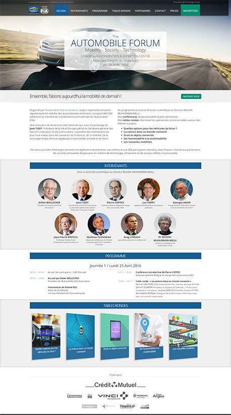 Réalisation du site évenementiel pour The Automobile Forum, forum sur la mobilité ayant eu lieu le 25 et 26 avril 2016.